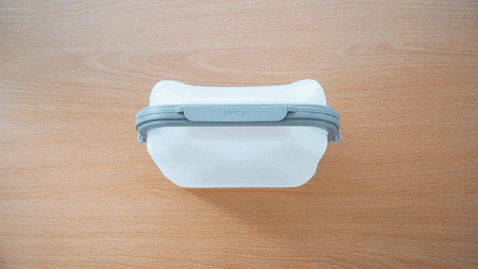 After folding the lasty food pack, you can gently press the silicone body again to completely squeeze the air out of it, and then press the lock lid.